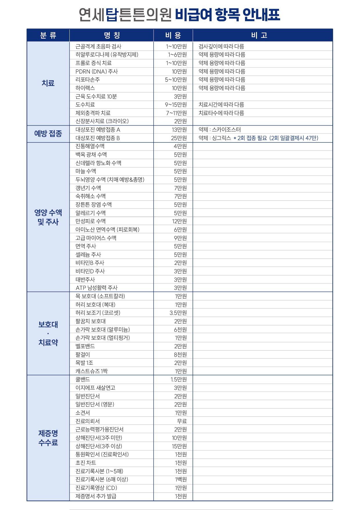 비용 50,000원 치료시간 30분 ~ 1시간